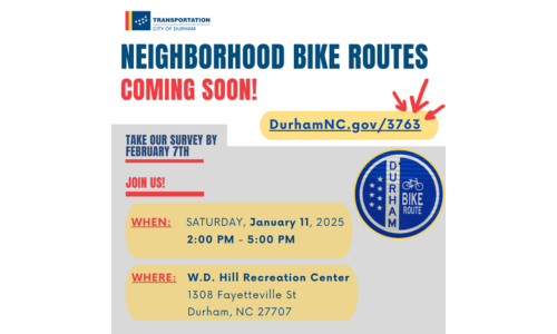 The second phase of Durham’s Neighborhood Bike Routes project kicks off Jan. 1 with an online survey and an upcoming event to meet with city transportation staff.