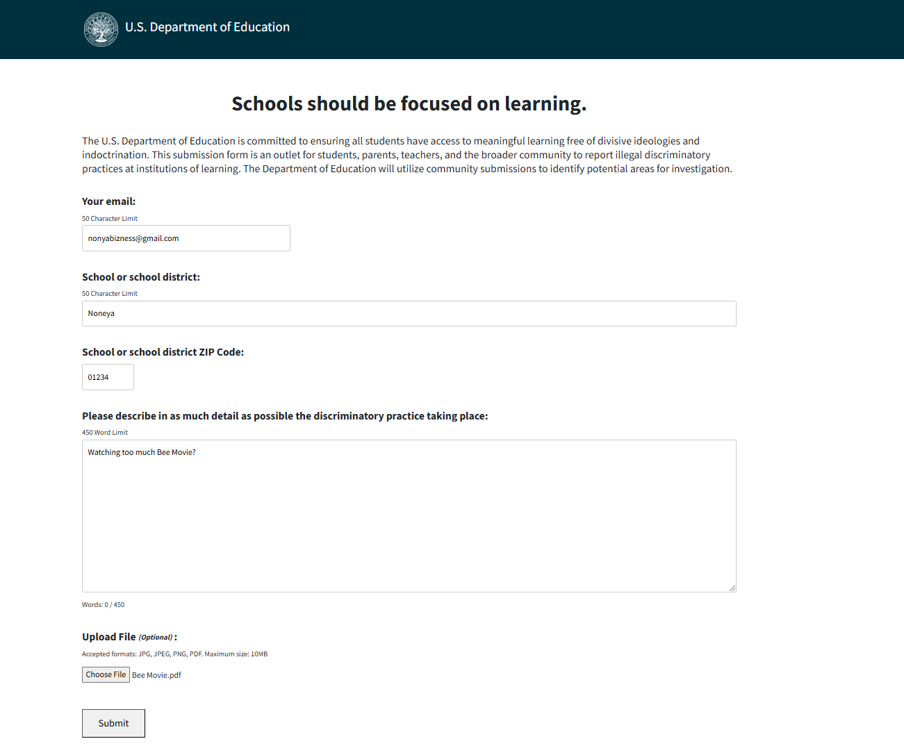 The U.S. Department of Education wants citizens to rat out schools that adhere to DEI principles. Here's another way you can help. Maybe?