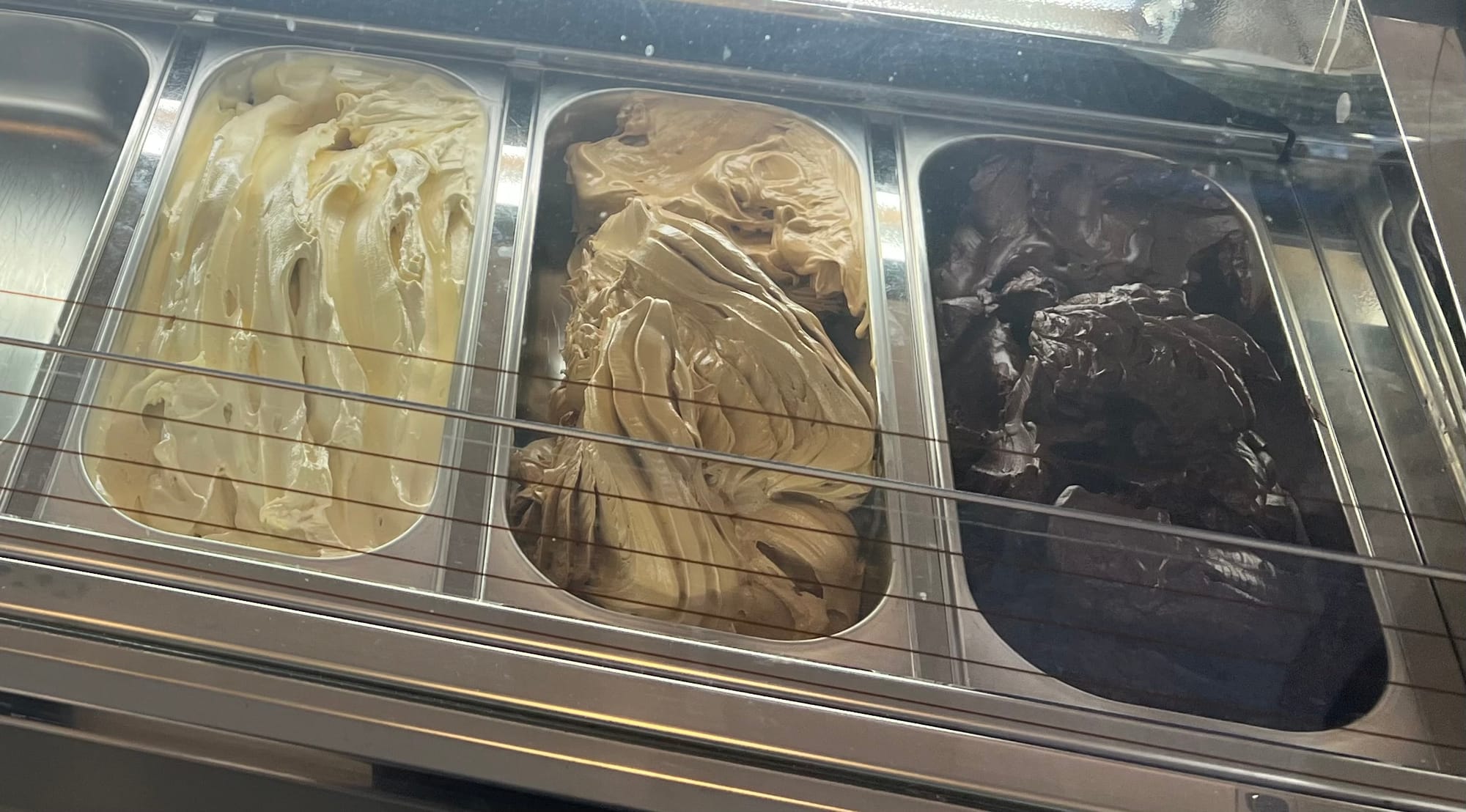 Right now, in the winter, it's not exactly the height of gelato season. So when I visited the shop, Chef Ken was kneading and flattening dough for croissants. Although he did have some gelato available, he also had a display case packed with pastries - eclairs, chocolate ganache tarts - plus tiramisu and an old-school Italian cheesecake.